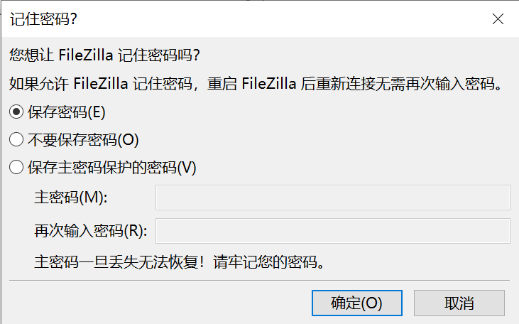 - Click “Confirm”: saving password is not recommended for safety consideration.