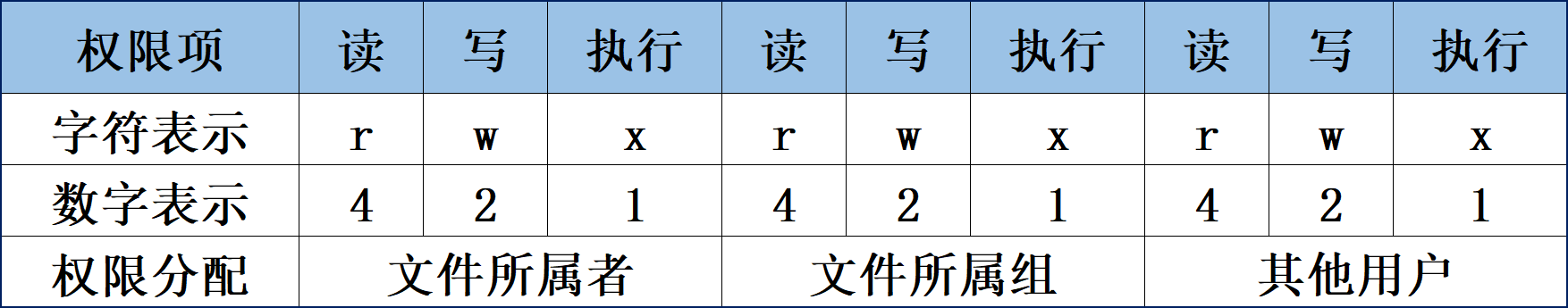 - 基本文件权限的字符及其数字表示